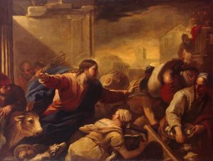 Just before the Jewish Passover Jesus went up to Jerusalem, and in the Temple he found people selling cattle and sheep and pigeons, and the money changers sitting at their counters there. Making a whip out of some cord, he drove them all out of the Temple, cattle and sheep as well, scattered the money changers’ coins, knocked their tables over and said to the pigeon-sellers, ‘Take all this out of here and stop turning my Father’s house into a market.’ Then his disciples remembered the words of scripture: Zeal for your house will devour me. The Jews intervened and said, ‘What sign can you show us to justify what you have done?’ Jesus answered, ‘Destroy this sanctuary, and in three days I will raise it up.’ The Jews replied, ‘It has taken forty-six years to build this sanctuary: are you going to raise it up in three days?’ But he was speaking of the sanctuary that was his body, and when Jesus rose from the dead, his disciples remembered that he had said this, and they believed the scripture and the words he had said.